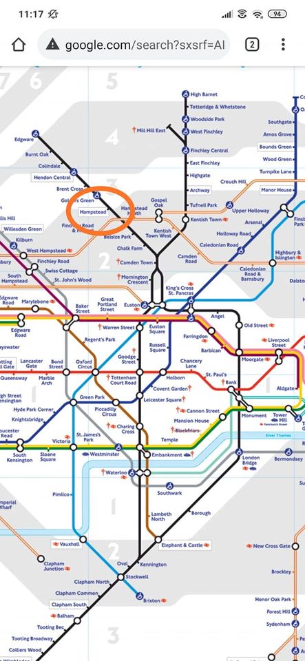 2) Take underground ( Tube ) Northern Line ( Black ) and reach either Hampstead or Belsize Park